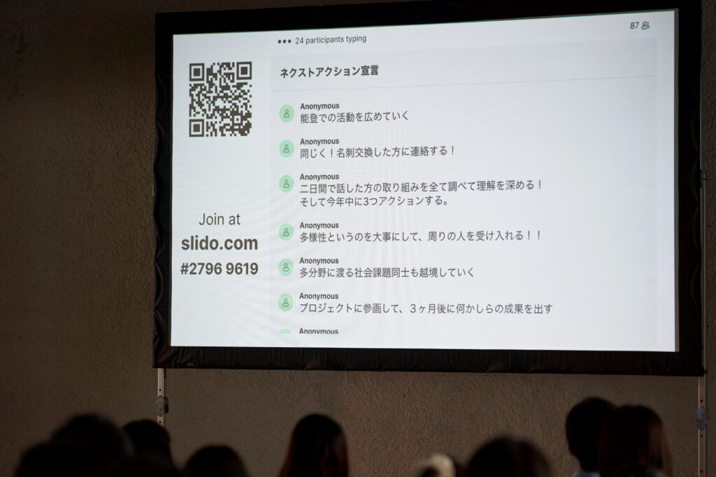 クロージングでは、アンケートアプリを使い、参加者一人ひとりがネクストアクション宣言!「名刺交換した人に連絡する」といった小さな一歩から「3ヶ月後に成果を出す!」といった熱意に燃える宣言まで、さまざまな決意が語られました。おそらく参加者は、2日間の多くのインプットとアウトプットを経て「何かしたい」とうずうずした気持ちが芽生えていたのではないでしょうか。そして、カンファレンスで育んだつながりがその第一歩となることを確信していたように思います。途中で帰って行く人はほとんどおらず、最後までたくさんの人が残っていたのが印象的でした。