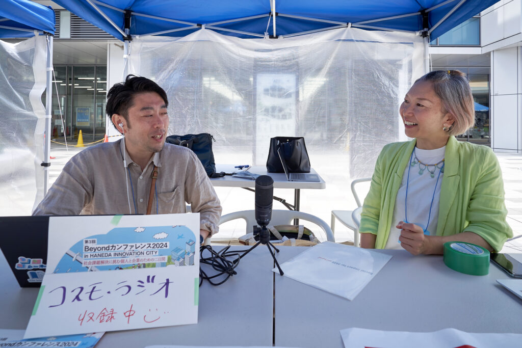 terminal.0正面には、総合インフォメーションも兼ねた「cosmo radio」の収録ブースが。beyondカンファレンス2024を楽しむためのガイドとして、当日のレポートなどをpodcastでリアルタイム配信。