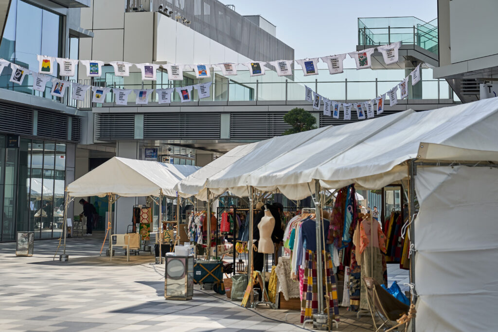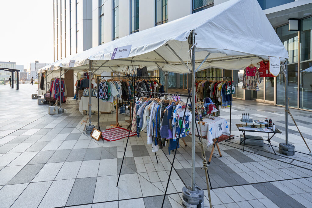 リメイクにフォーカスしたマルシェ×フリーマーケットが開催されました。羽田空港のある東京都大田区エリアのお店を中心に、飲食店や古着店、アップサイクルアクセサリーショップなどさまざまなショップが並び、また、「十人十色の空」をテーマに羽田小学校の子どもたちが描いた絵をプリントしたTシャツで、会場となったHICityのイノベーションコリドーを彩りました。