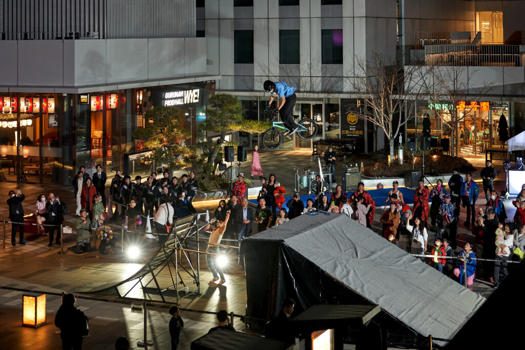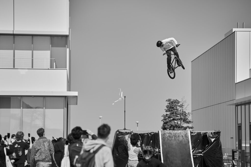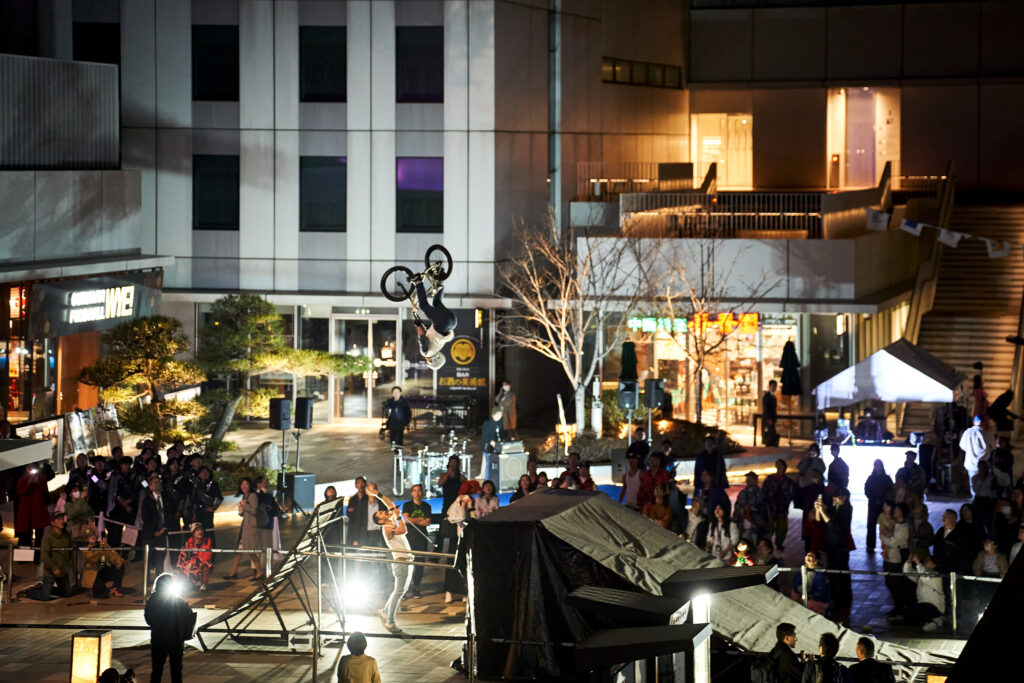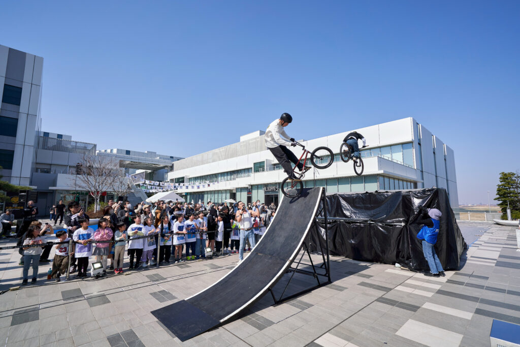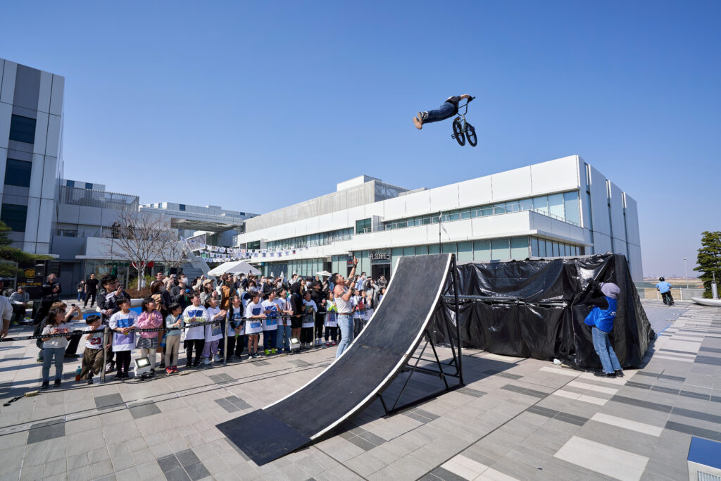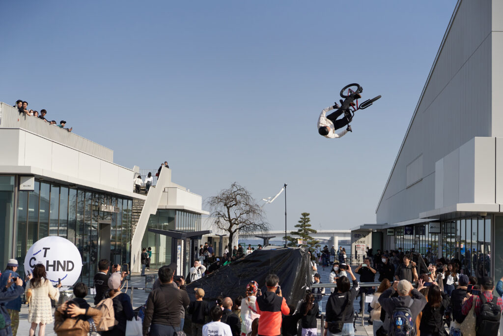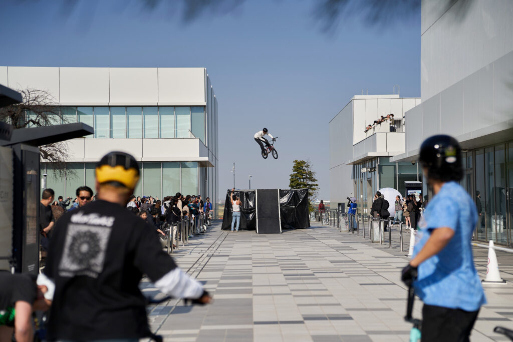 ステージコンテンツの特設ステージでは、#空飛ぶチャリ AIR TRICK SHOW®によるBMXのパフォーマンスが行われました。AIR TRICK SHOW®は、東京2020オリンピックで正式な追加種目となったBMXフリースタイル・パークをモチーフとしたアーバンスポーツの出張パフォーマンス集団です。