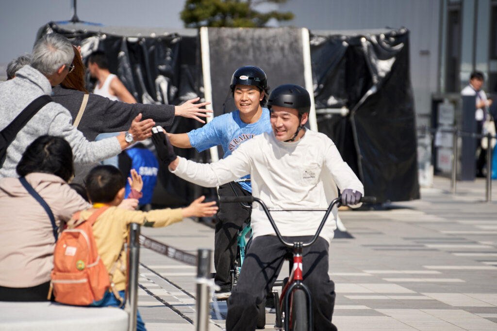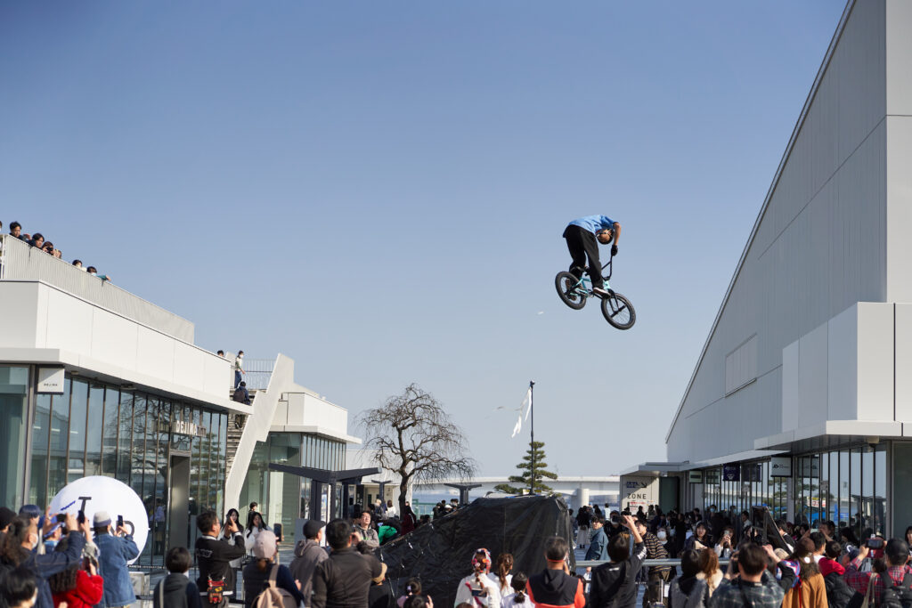 全日本選手権優勝ライダーを含む、国内屈指のライダーたちが空中を舞い、迫力のあるトリックを決めるシーンに会場の人々の大きな歓声と拍手が沸き起こり、全3回のパフォーマンスにたくさんの人たちが集まりました。