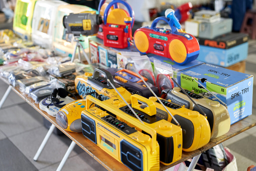 カラフルで華やかな色で人の目を魅きつけるのは、80-90年代のヴィンテージラジカセやポータブルカセットテーププレーヤーたち。stability_turnの店主、stability(スタビリティ)さんが各国から集めた商品を修理、調整したもの、さらにカスタムを加えたオリジナル商品がズラリ。