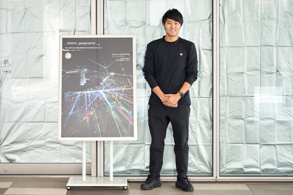 HICityのZONE Bで展示された「PRISM_geographic」は、株式会社博展の所属アーティスト、小野寺 唯さん(クリエイティブディレクター)、高橋 匠さん(空間デザイナー)、熊崎 耕平さん(プロダクトマネジメント)によるインスタレーションです。