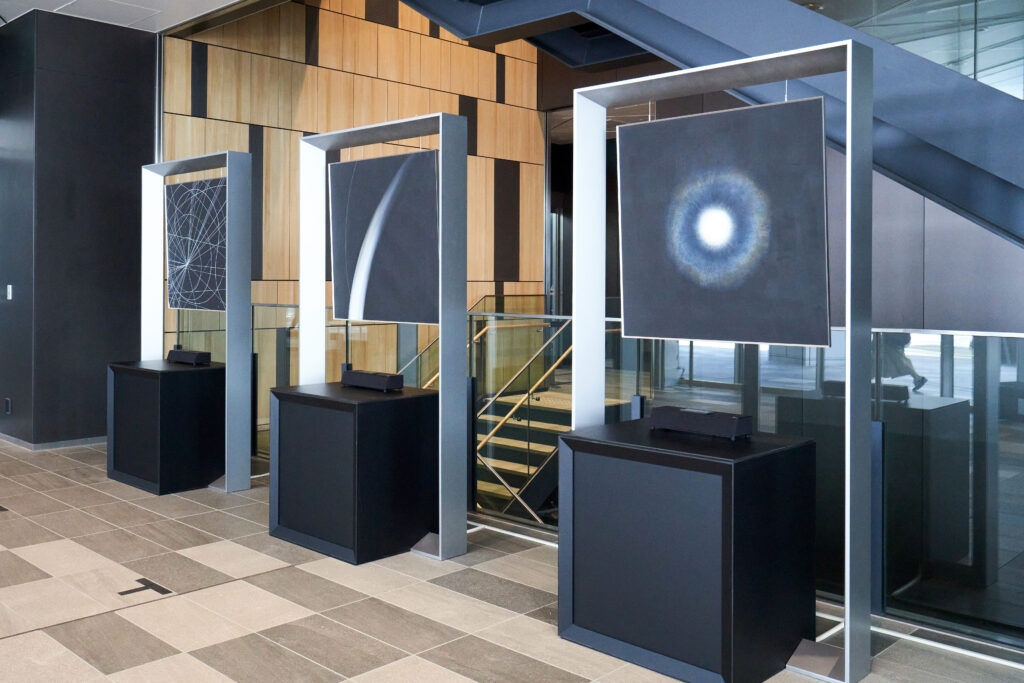 もうひとつの常設展示は、HICity ZONE KのGALLERYにて見ることができました。株式会社博展のクリエイターと鹿島建設株式会社が共同制作した作品は話題の立体音響スピーカー「OPSODIS 1」を駆使し、音楽と絵画がひとつになった空間アートです。