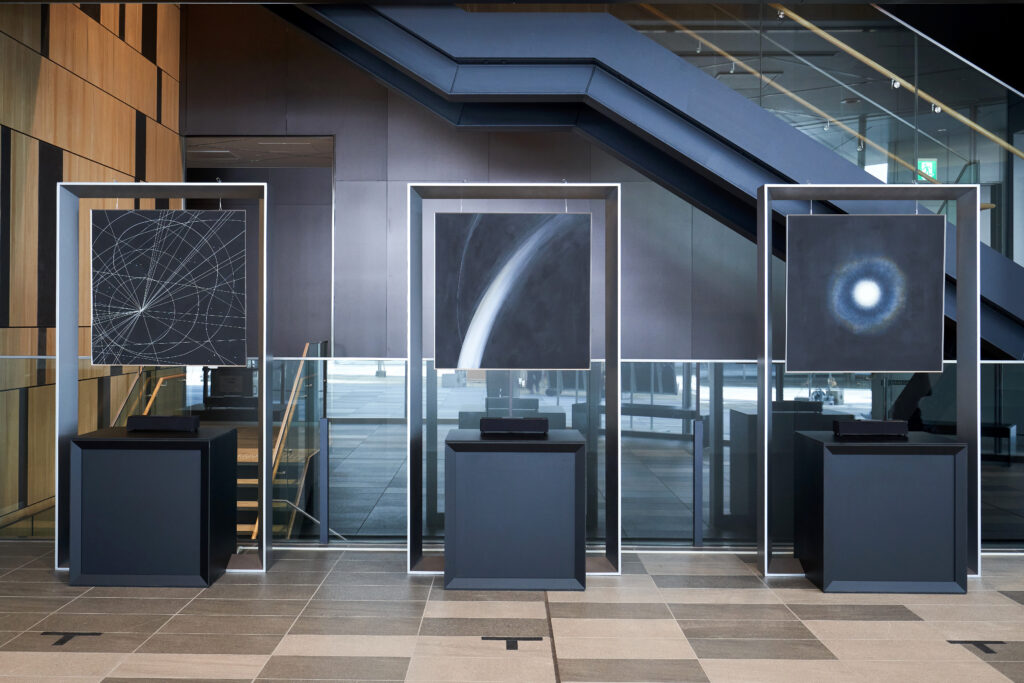 今回の常設展示『NOVA』は、「羽田SKY」からインスピレーションを受け、空港は空に近く世界と繋がるという面から、新星=NOVAをテーマに、空港夜景、飛翔、飛び立った後に生まれるもの(未来)の3つの絵画と音楽で構成し、作品の企画と音楽は坂口 倫崇さん(博展/音楽家)、空間デザインに原 良輔さん(博展)、そして絵画は金田 紘美さん(鹿島建設株式会社/画家)が担当。