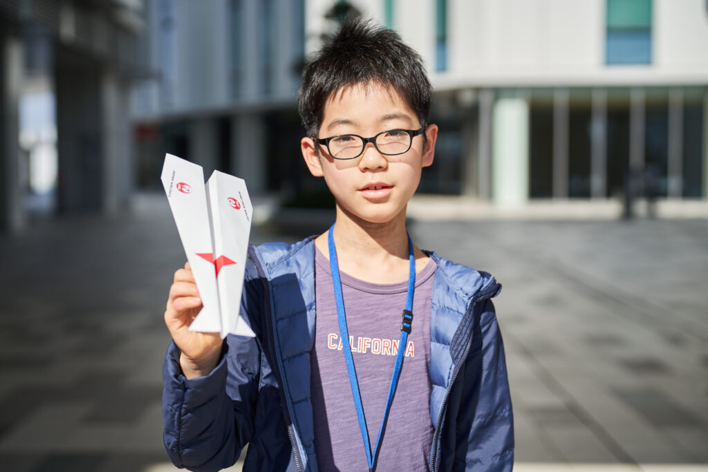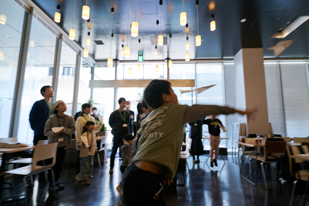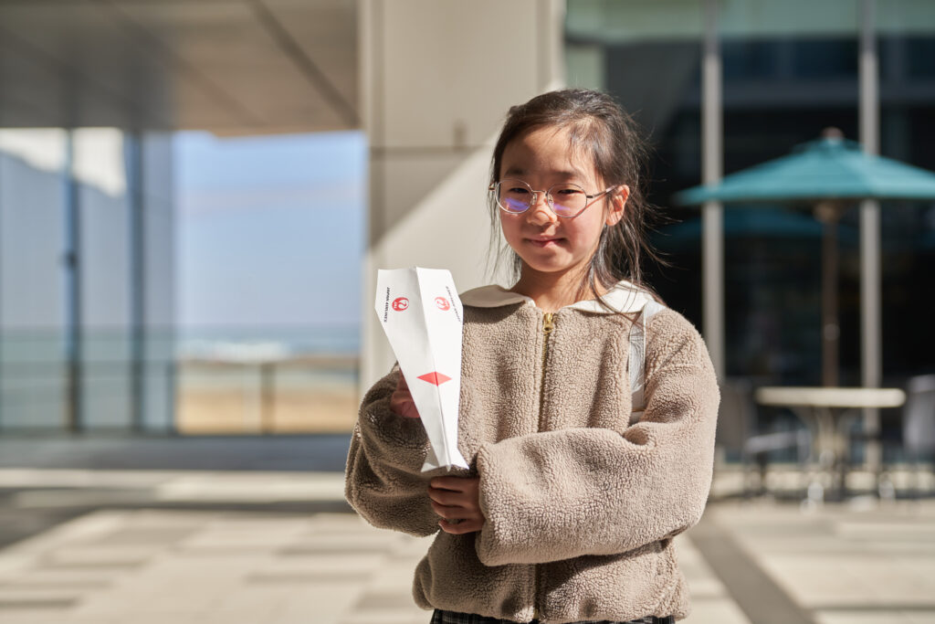 HANEDA INNOVATION CITYの上空は、風向きによって何機もの旅客機が飛び交います。その下で紙ヒコーキを作り、飛行機と慣れ親しんだ時間は、きっと子どもたちの未来に繋がっている──そう願わずにはいられません。