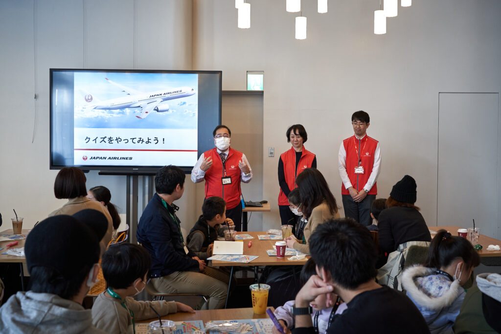 参加者は「羽田空港にまつわるコンテンツ」、「地域や“まち”の特性を活かした企業と連携したコンテンツ」の両方に参加します。今回レポートするのは前者となる内容の、日本の空の旅を支えるJAL(日本航空)による、2024年2月18日に開催された「JAL折り紙ヒコーキ教室」です。大田区内の小学1年生から6年生までの多くの生徒と保護者に参加いただきました。