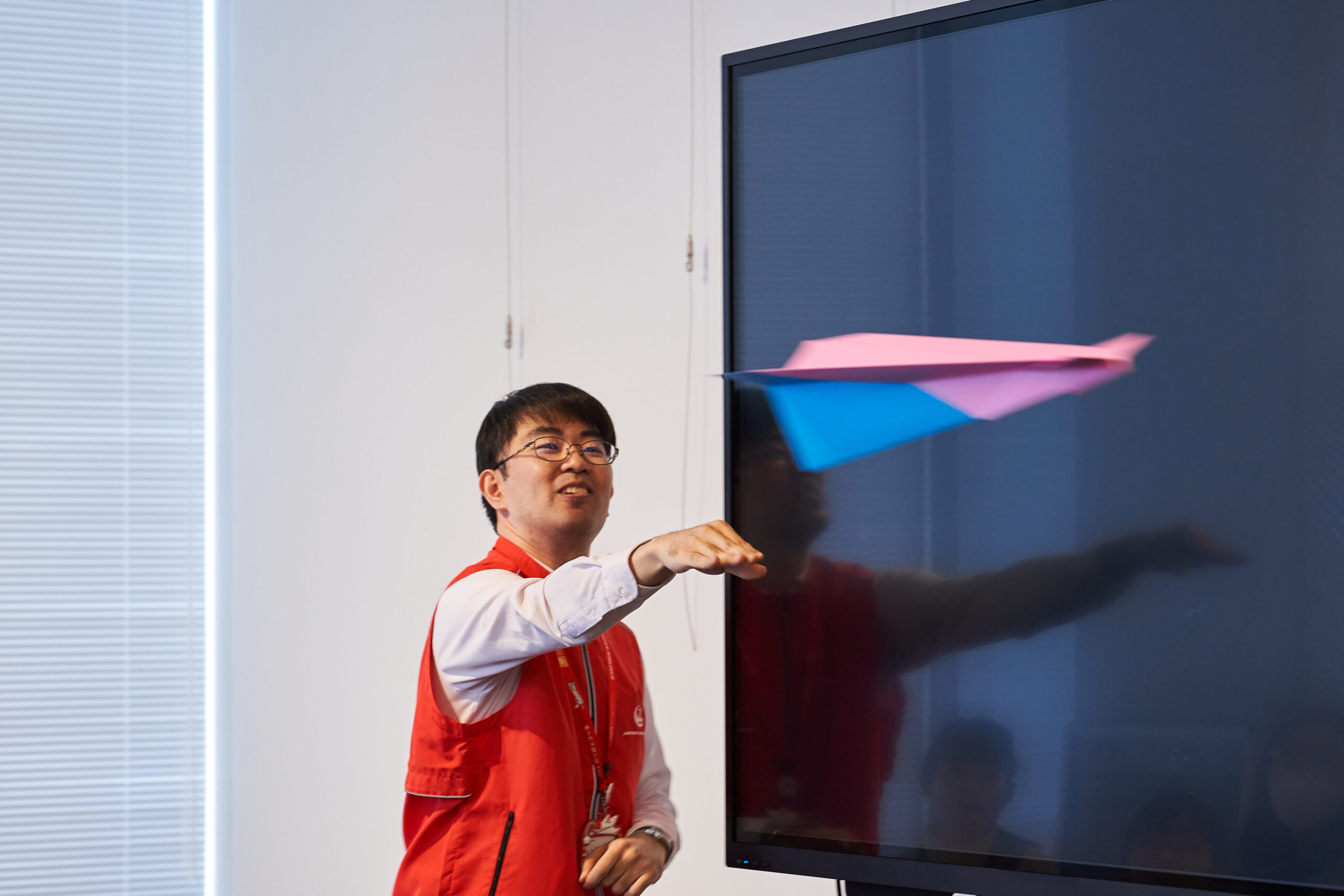 「紙ヒコーキ教室を通じて、少しでも飛行機や航空業界に興味を持ってくれたら嬉しいです!」と話すのは、JAL総合政策センターの細島道博さん。JALでは長らく社会貢献活動として、子どもたちの興味をそそるようなワークショップに取り組んできました。この折り紙ヒコーキ教室は、各地の小学校でも出張授業するほど人気のプログラムなのだそうです。