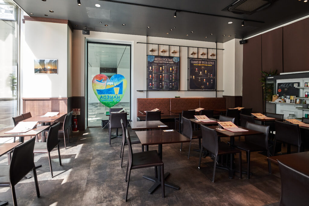 HANEDA INNOVATION CITY(以下、HICity)2Fのイノベーションコリドー(歩行者専用デッキ)沿いにあり、いつもたくさんの人で賑わっている、クラフトビール醸造所併設のレストラン「HANEDA SKY BREWING」は、店内および系列店の醸造所で製造する多種多様なクラフトビールを、いつでも気軽に楽しむことができるお店です。
